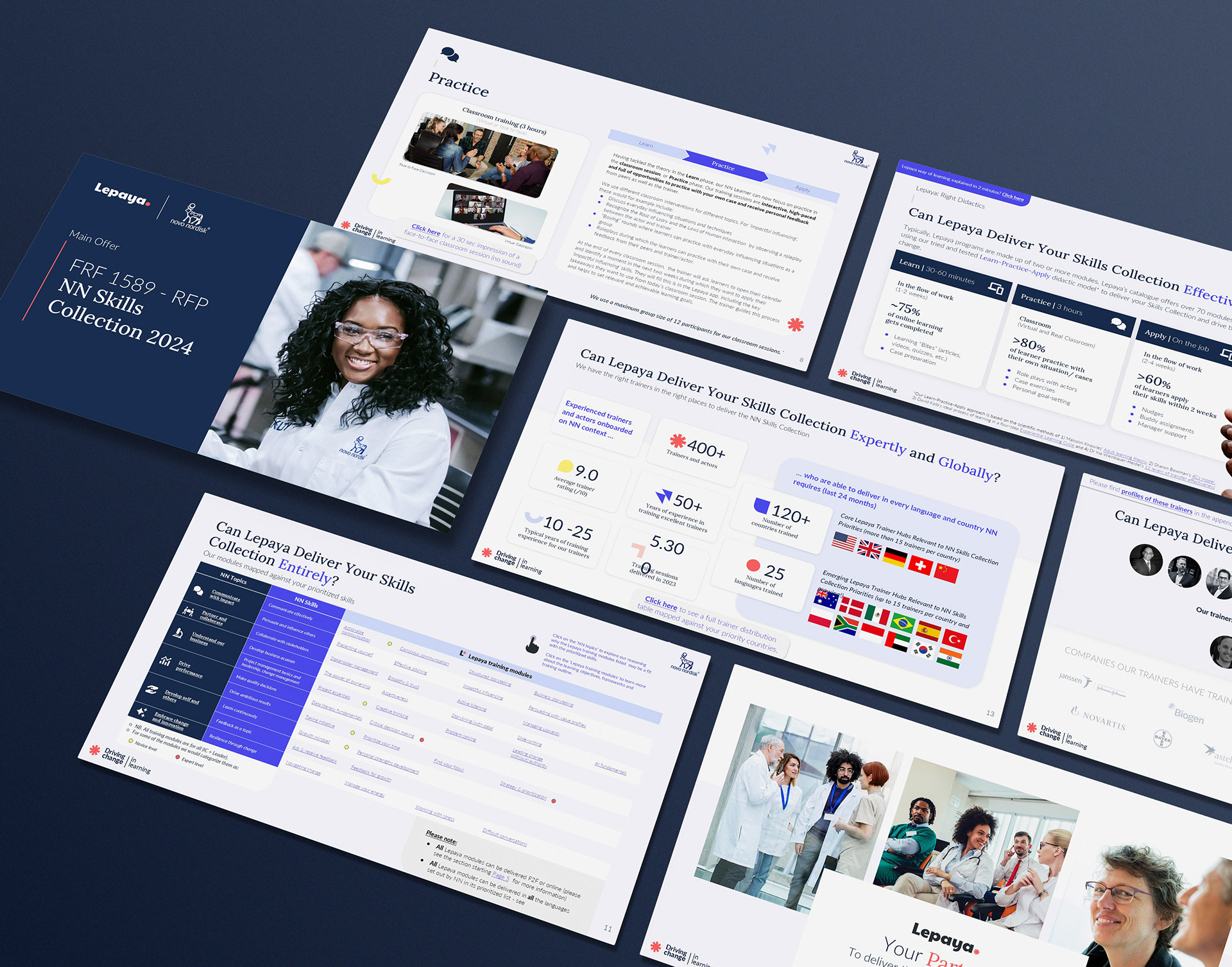 A proposal deck designed to feel both credible and effortless to navigate. The layout system uses modular cards, structured tables, and strong hierarchy to make the offer scannable, while still supporting detail-heavy content like learning models, global delivery capability, and module breakdowns.